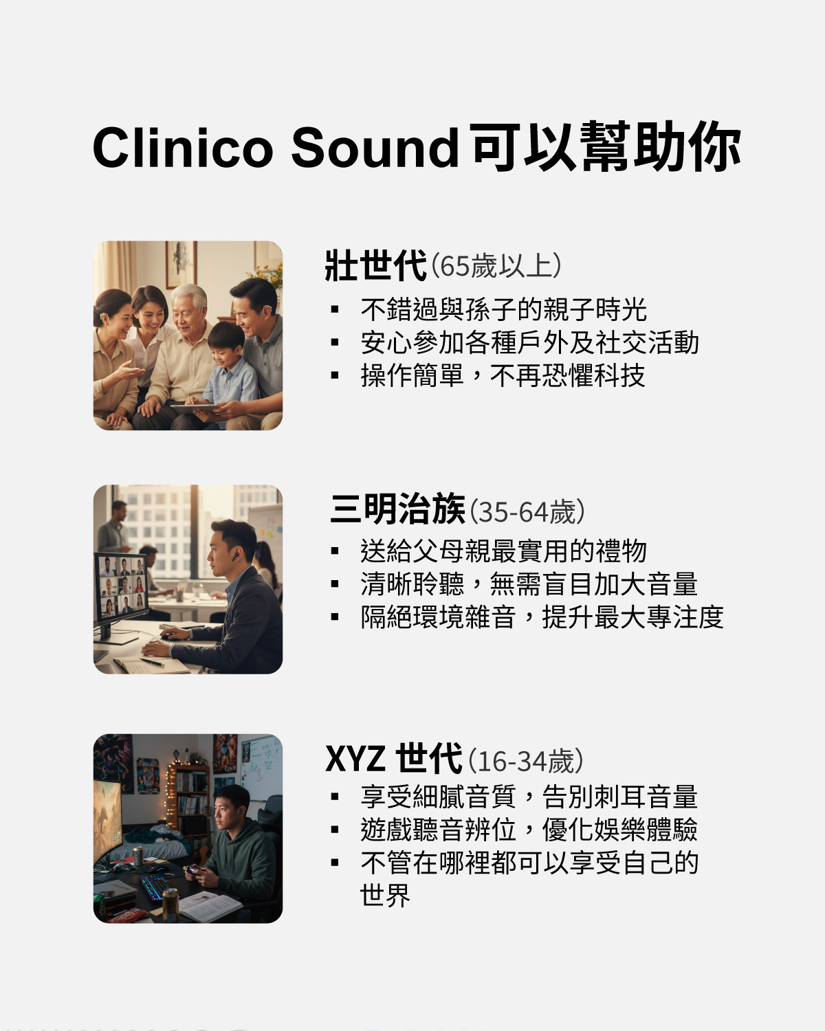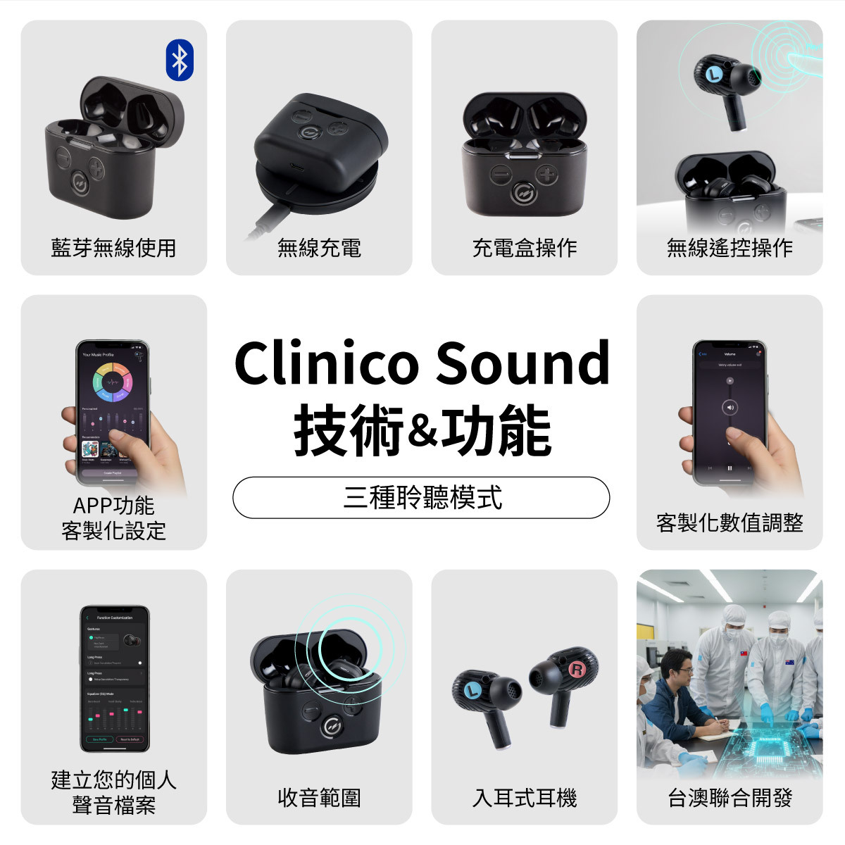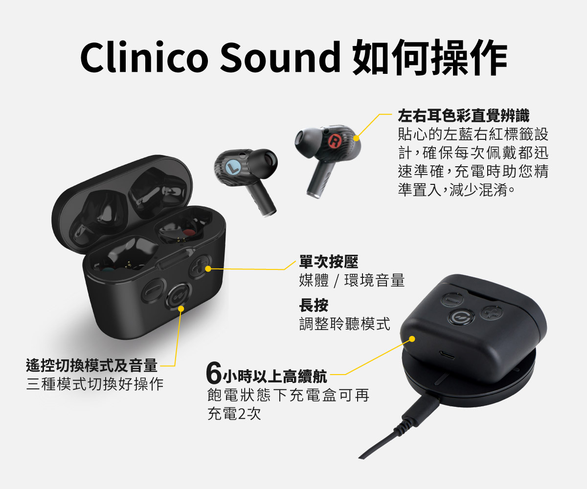 Clinico Sound 量身打造的降噪體驗,不管是專注工作、察覺環境到與人交談,三種模式輕鬆應對不同場景需求,